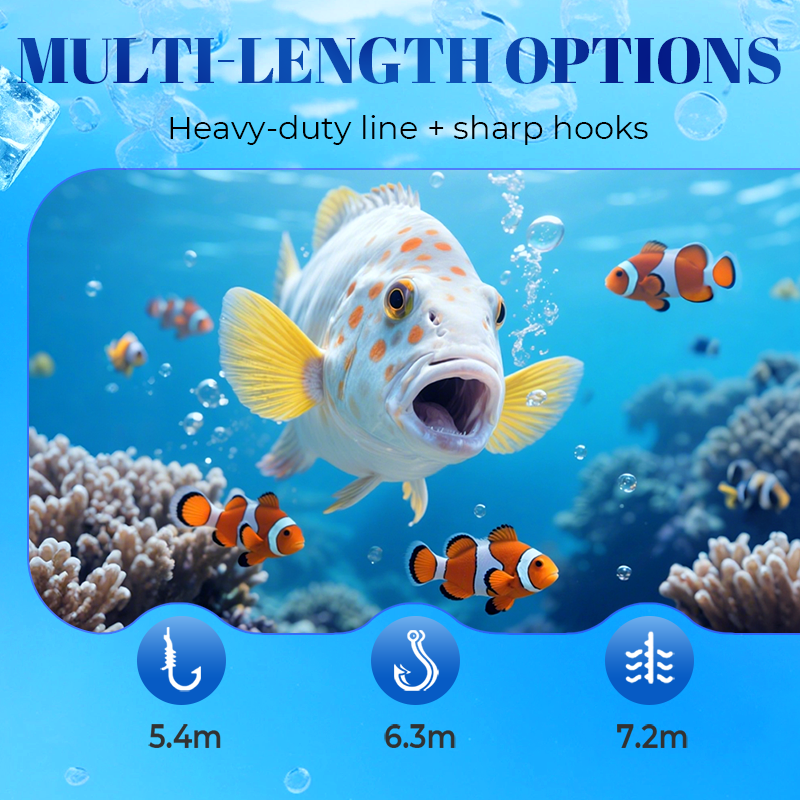 HERVORRAGENDE STÄRKE UND SCHÄRFE: Hergestellt aus hochfesten Hauptschnüren (3,0–6,0) und messerscharfen Iseni-Haken (Größen 7–10) für unübertroffene Haltbarkeit und Durchdringungskraft. Bewältigt aggressive Bisse und schwere Fische mit Leichtigkeit.