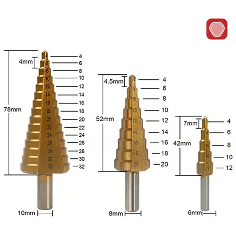 SHARP PAGODA-SHAPE: This set features a sharp pagoda-shaped design, allowing for efficient drilling without slippage. The stepped design ensures smooth and precise drilling of concentric holes, making it easier to achieve professional results.