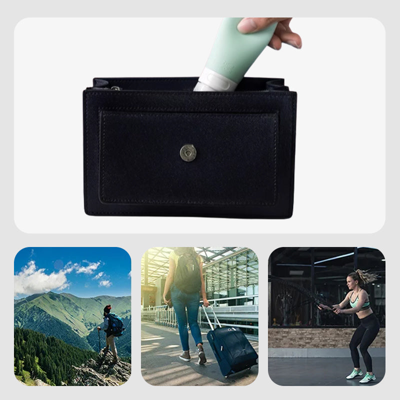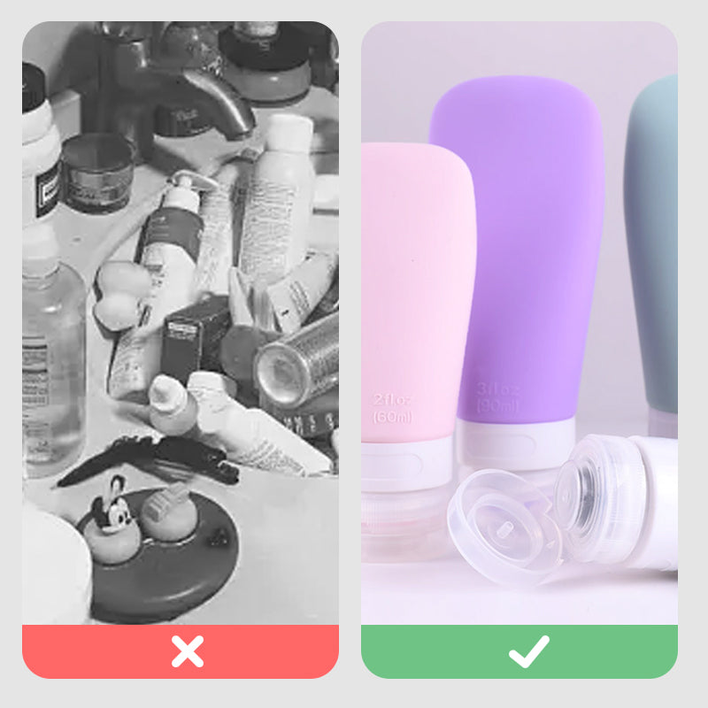 Introducing our Portable Silicone Leak-Proof Travel Bottles, the perfect travel companions. These bottles feature a leak-proof design, wide openings for easy filling and cleaning, and are incredibly easy to carry. Stay organized and spill-free on your travels with these reliable and convenient travel essentials.