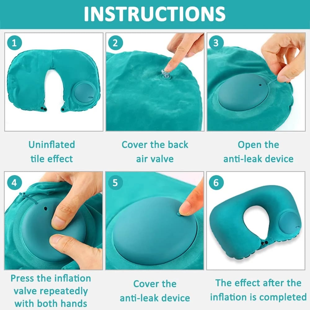 - 【Portable Neck Pillow with Built-in Pump】This is an inflatable neck pillow. Press the pump to inflate within 30-60 seconds. Convenient, portable and compact!