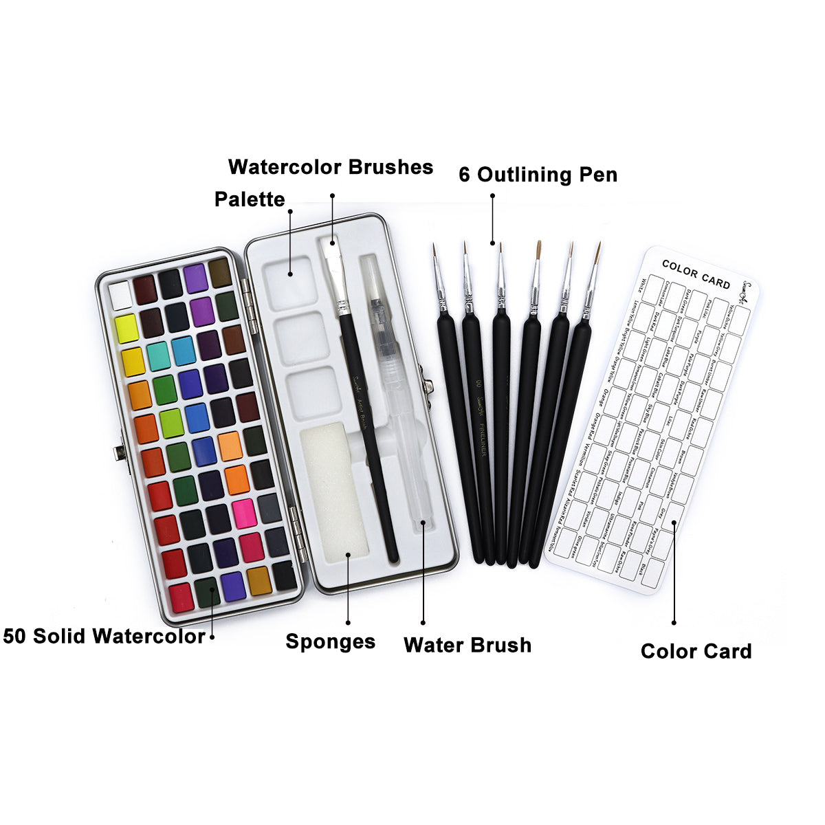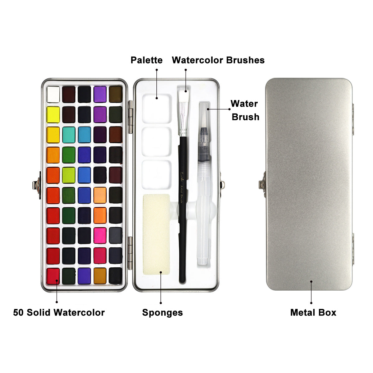 Tiemges watercolor paint set features high-quality artist-grade watercolors that blend easily and offer many color options to save you time from having to blend custom colors. The 50 unique colors are carefully selected to meet the basic needs of daily painting. Using these brilliant colors in this palette to achieve a variety of effects, from bold, vibrant images to delicate watercolor washes!